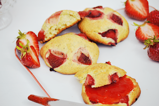 | Erdbeerscones Mein allererstes Scones Rezept und ich war sofort verliebt in diese leckeren Frühstücksbrötcchen. Mit Mohn und Zitrone und frischer Erdbeermarmelade sind sie einfach der Hit bei jedem Sonntagsbrunch |